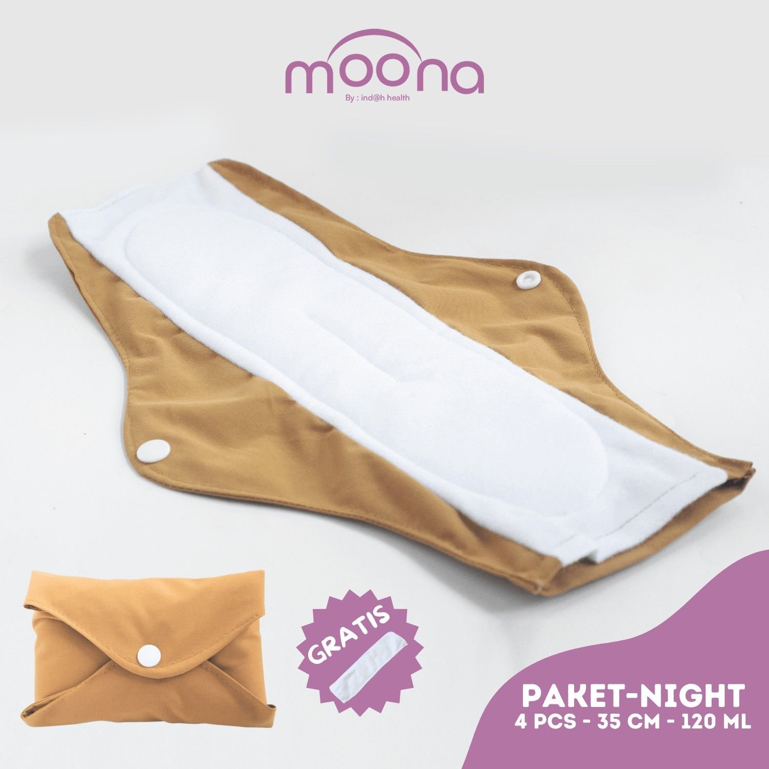 Moona Pembalut Kain Menspad Cuci Ulang Wanita Menstrual Pad Free Insert – Paket Night 4 Pcs
